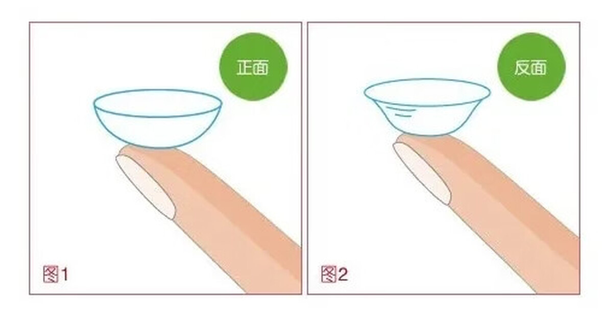 1、外观法: 把镜片放在手指上,如果边缘内扣像碗就是正面,如果像碟子一样摊开就是反面;